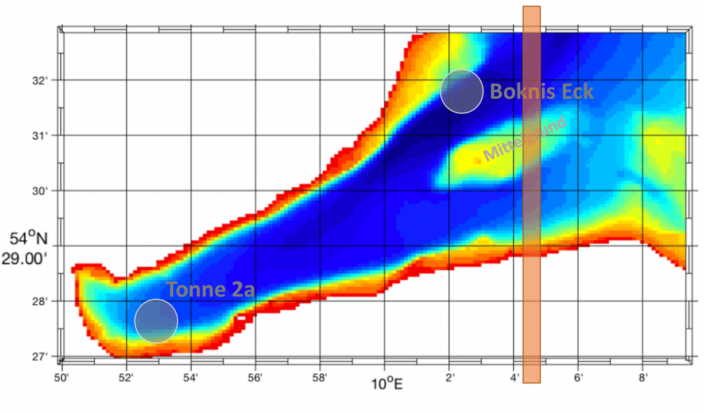 MOMBE is an ultra-high resolution ocean circulation model of Eckernförde Bight in the Baltic Sea. The spatial resolution is 100x100m. MOMBE is coupled to the oxygen module EckO2.